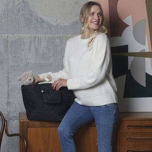 Ulluv's Signature quilted tote is a great shoulder bag (which can also be worn cross-body due to the detachable long strap which comes with it!) for those looking for a practical all-rounder. Whether as an overnight bag, gym bag, work bag (fits laptop!) or mom bag, this premium quality, quilted tote has great style and capacity.