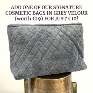 FOR A LIMITED TIME ONLY WE ARE OFFERING A SIGNATURE COSMETIC BAG IN DARK GREY (WORTH €19) FREE WITH OUR PREMIUM NESTPODS!