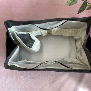 Our stunning baby bag converter is an insert that gives you the flexibility of using any bag as a baby changing bag, providing great multi-functionality, flexibility and sustainability! Originally designed specifically with the dimensions of our Signature tote bag in mind, this organiser will fit most totes and smaller holdalls (just check dimensions before you purchase to make sure!). For info, we have tested it with with Longchamp Le Pliage Large tote (photo of this included here) and it fits perfectly (and also gives that tote a structure as the material is very flimsy and it can fold in on itself!). We have also tested it successfully with the LV Neverfull as well as our own Signature tote and Classic tote!