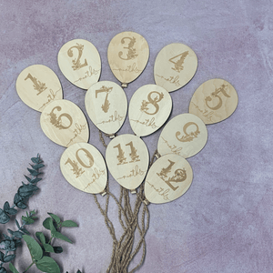 - Our set of 12 wooden balloon milestone plaques (1 to 12 months)